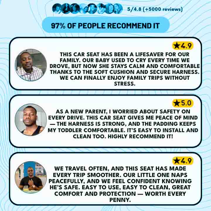 Comfortable journeys — soft cushioning and ergonomic design reduce fussiness and improve nap time.